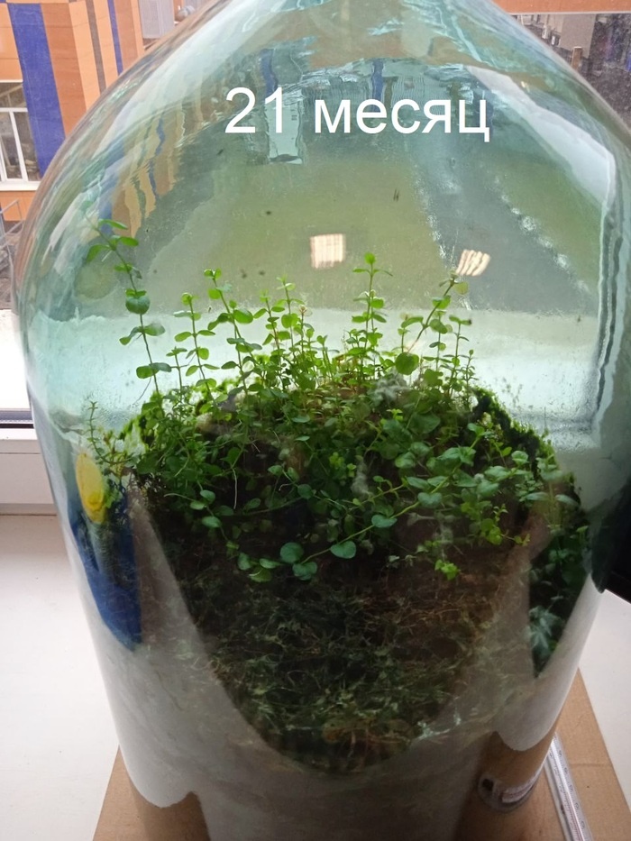 Меня радует то, что молодые весенние побеги плесень пока не поражает. Это даёт надежду, что летом растения всё же победят, и хотя бы до зимы в бутылке будет зелень, а не плесневое царство.