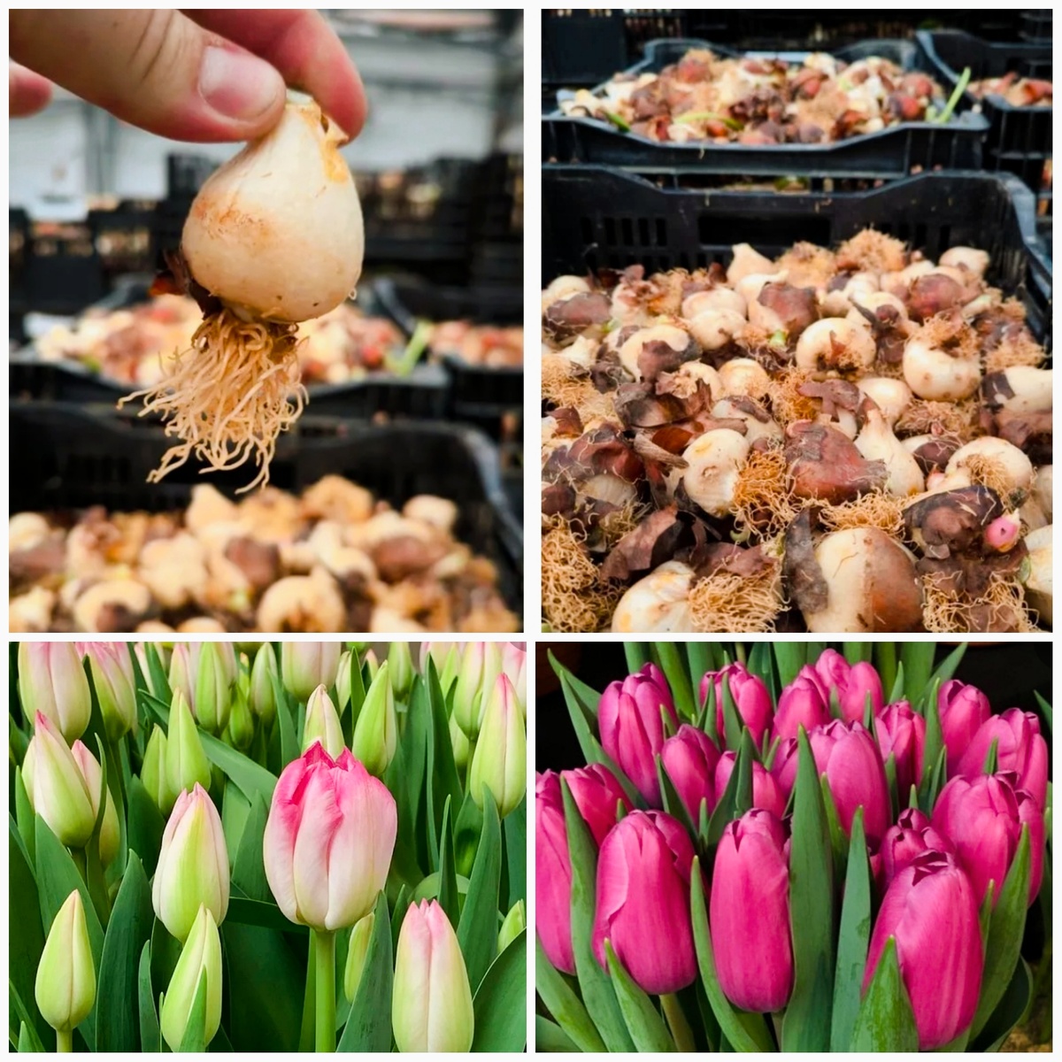 Настоящая это фотография или нет, неважно, а важно то, что я захотела себе такое же количество красивых тюльпанов. Написала об этом в комментариях, сказав, что для этого нужно целое состояние. К моему удивлению, одна женщина дала мне совет, которым я поспешила воспользоваться. Идея мне кажется очень удачной, поэтому делюсь с вами! Итак, женщина рассказала, что получить кучу тюльпанов можно за оооочень малые деньги или вообще бесплатно, если сохранить луковицы тюльпанов после выгонки. Где же их взять? Оказывается, во многие цветочные магазины тюльпаны к 8 марта привозят оптом с луковицами (чтобы цветы дольше сохранились), и потом флористы отрезают их перед созданием букетов и продажей. Сами же луковицы они могут продать очень дёшево или вообще отдать просто так.