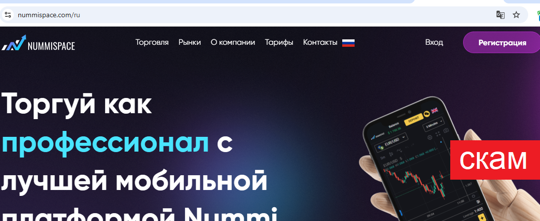 Сегодня я поделюсь с вами информацией о брокере Nummispace.com. Если вы задумываетесь о сотрудничестве с этой компанией, обязательно прочитайте этот материал до конца. В сети можно найти множество отзывов о Nummi-space, и, к сожалению, большая часть из них негативная. Многие пользователи жалуются на недобросовестность компании, проблемы с выводом средств и навязчивость аналитиков. Вот пример одного из таких отзывов: "После регистрации на Nummispace мне назначили личного аналитика. Сначала все шло хорошо, но затем он начал настойчиво убеждать меня пополнять счет на крупные суммы. Когда я решил вывести часть средств, мне сообщили о необходимости оплаты различных комиссий и налогов. В итоге я потерял значительную сумму денег." Нуммиспэйс использует классическую схему обмана: Дополнительным тревожным сигналом является то, что сайт Trade.Nummispace.com функционирует очень короткое время - с начала 2025г. Многие мошеннические проекты создают новые домены и сайты, чтобы скрыть свою преды