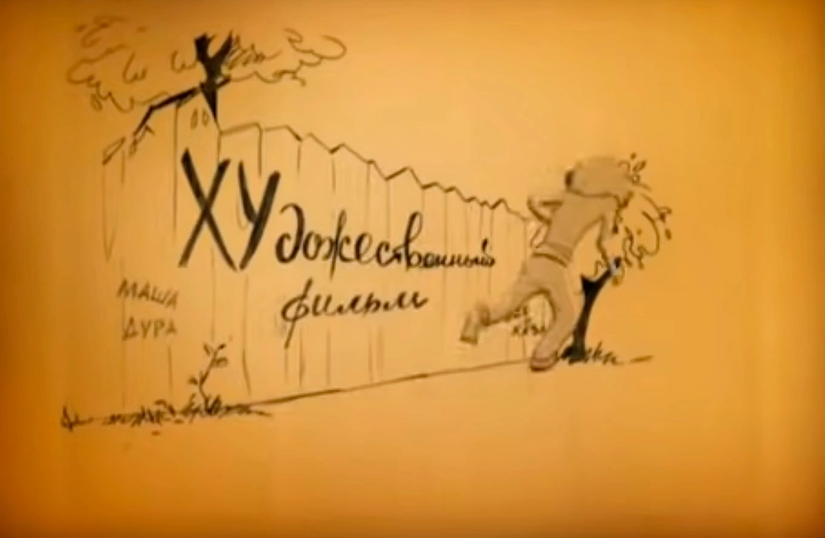 Там первым в кадр выходил «Бывалый», подходил к забору и решительно рисовал на нем букву Х. Вслед за ним возникал «Балбес», который становился рядом и выводил тут же букву У. Последним подтягивался «Трус». Он поднимал было руку, но тут откуда ни возьмись возникал милиционер со свистком, и герой Вицина вместо ожидаемого писал ДОЖЕСТВЕННЫЙ ФИЛЬМ: