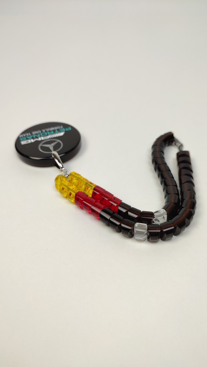 длина ~ 210 мм Гравировка нанесена на две поверхности из двух, содержит в себе два эскиза. Элегантность, статус и стиль — всё это сочетается в этих чётках, созданных специально для владельцев и ценителей легендарного бренда. Чёрная основа подчёркивает строгость и уверенность, а красно-жёлтые акценты напоминают о динамике и скорости. Медальон с фирменным логотипом Mercedes-Benz завершает образ, превращая эти чётки в символ уверенности на дороге.