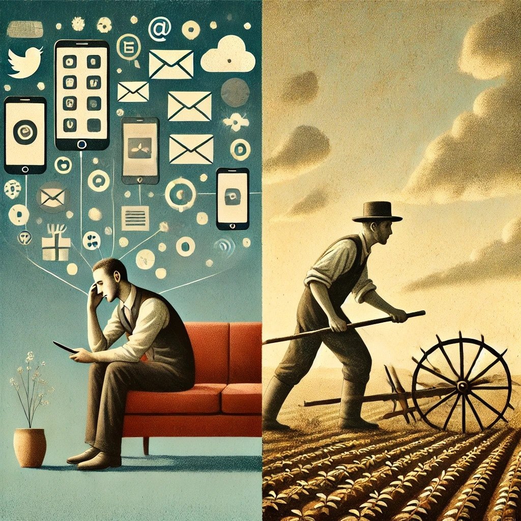 Иногда кажется, что невроз — это болезнь цивилизации. Что в XVIII веке у людей не было панических атак. Что никто не сидел и не говорил: «У меня внутренний конфликт. Мне плохо, потому что я не разрешаю себе уйти от Маши, хотя влюблён в Дашу». И правда — не говорил. Но не потому, что не чувствовал. А потому что жизнь не давала времени на осознание. Ты просто шёл пахать. Выживать. Есть — работать — рожать — умереть. Всё. Цивилизация дала нам доступ к чему? К выбору. К морали. К рефлексии. А вместе с этим — к собственной невыносимости. Теперь человек может сидеть на балконе с чашкой кофе, смотреть в точку и говорить: