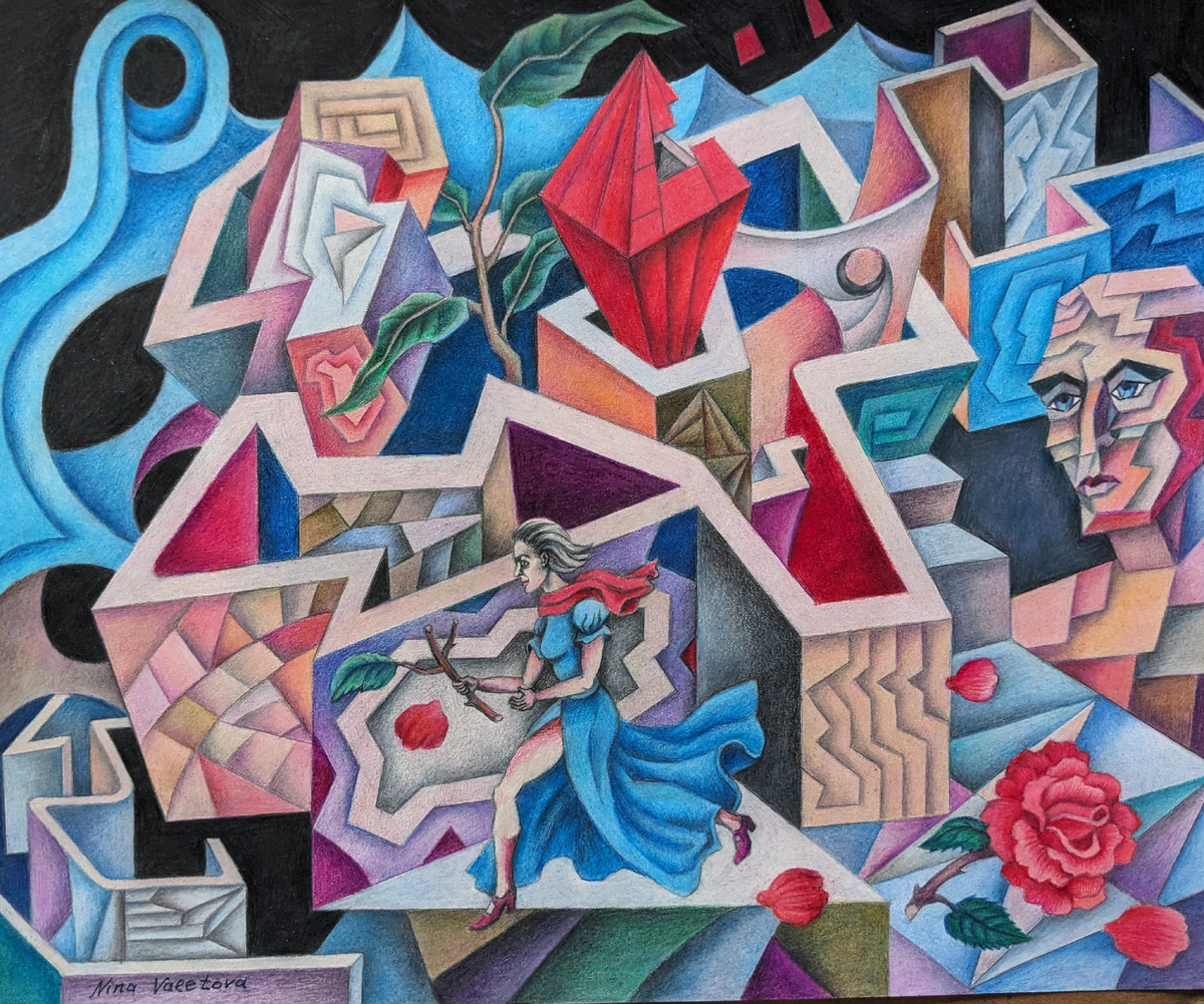 Изначально содержание рисунка было навеяно романсом на стихи Николая Гумилева. Я хотела назвать рисунок " Сломанная роза" или " Лепестки увянувшей розы", но затем появилась идея другого названия на тему древнегреческой мифологии, где верная мужу Пенелопа ждала Одиссея многие годы. Но в моем случае я решила усложнить и обыграть содержание мифа. ОДНООБРАЗНЫЕ МЕЛЬКАЮТ Однообразные мелькают Все с той же болью дни мои, Как будто розы опадают И умирают соловьи. Но и она печальна тоже, Мне приказавшая любовь, И под ее атласной кожей Бежит отравленная кровь. И если я живу на свете, То лишь из-за одной мечты: Мы оба, как слепые дети, Пойдем на горные хребты, Туда, где бродят только козы, В мир самых белых облаков, Искать увянувшие розы И слушать мертвых соловьев. 1917 г. Николай Гумилев