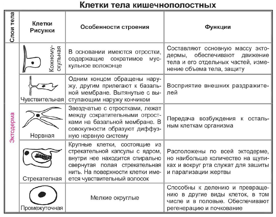 Клетки тела кишечнополостных
