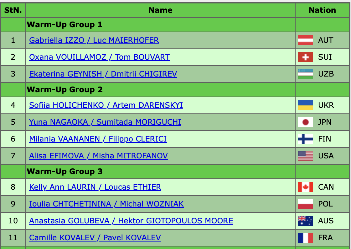 Мой обзор на пару Гейниш-Чигирёв, представляющих Узбекистан, и на 2 последние разминки.