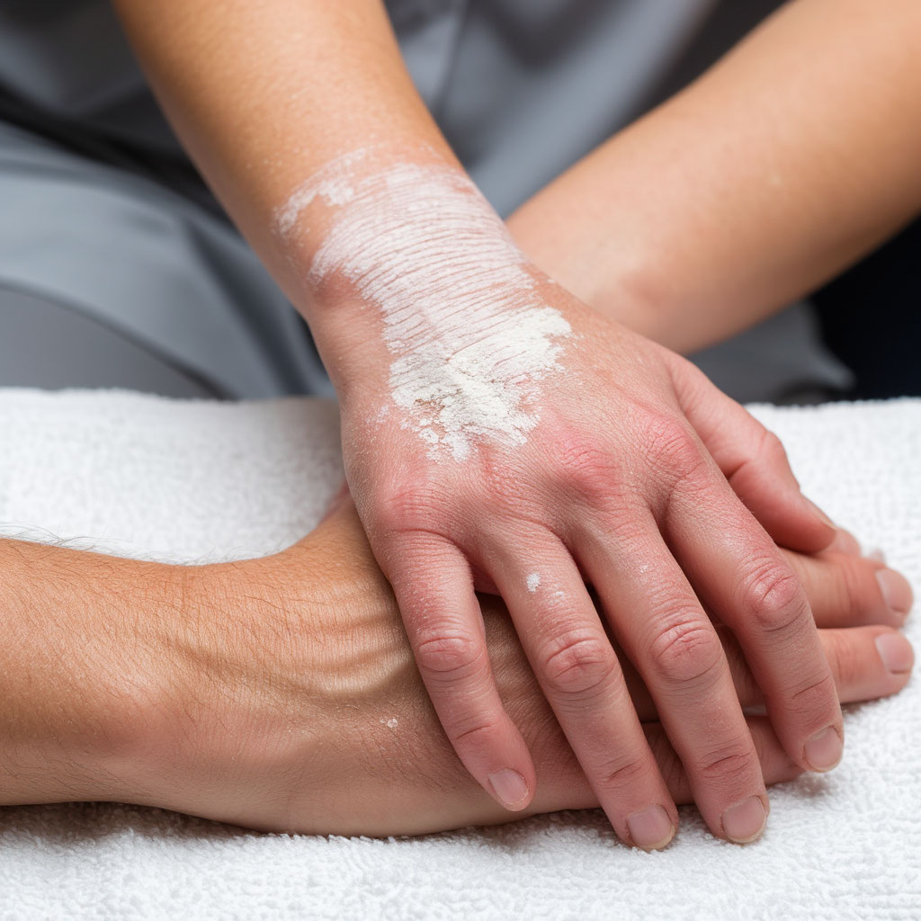 Онихолизис — это заболевание, проявляющееся отслойкой ногтевой пластины от ногтевого ложа. Несмотря на то, что вышеперечисленные факторы риска играют важную роль в механизмах возникновения данного заболевания, существуют и другие дерматологические заболевания, способные оказывать влияние на здоровье ногтей. Они могут не только служить предпосылками для развития онихолизиса, но и усугублять уже существующую проблему. Псориаз — одно из таких заболеваний. Это хроническое воспалительное заболевание кожи может приводить к изменению всех слоев кожи, в том числе и ногтевой пластины. При псориазе наблюдается утолщение ногтей, их изменение структуры, что в свою очередь может вызвать онихолизис. Клинические проявления, такие как точечные вмятины, дисколорация и развитие субунгвальных гиперплазий, в сочетании с воспалением тканей вокруг ногтевой пластины создают идеальные условия для возникновения данной патологии. Псориатические изменения могут затрагивать и ладоней, и подошвы, и при отсутстви