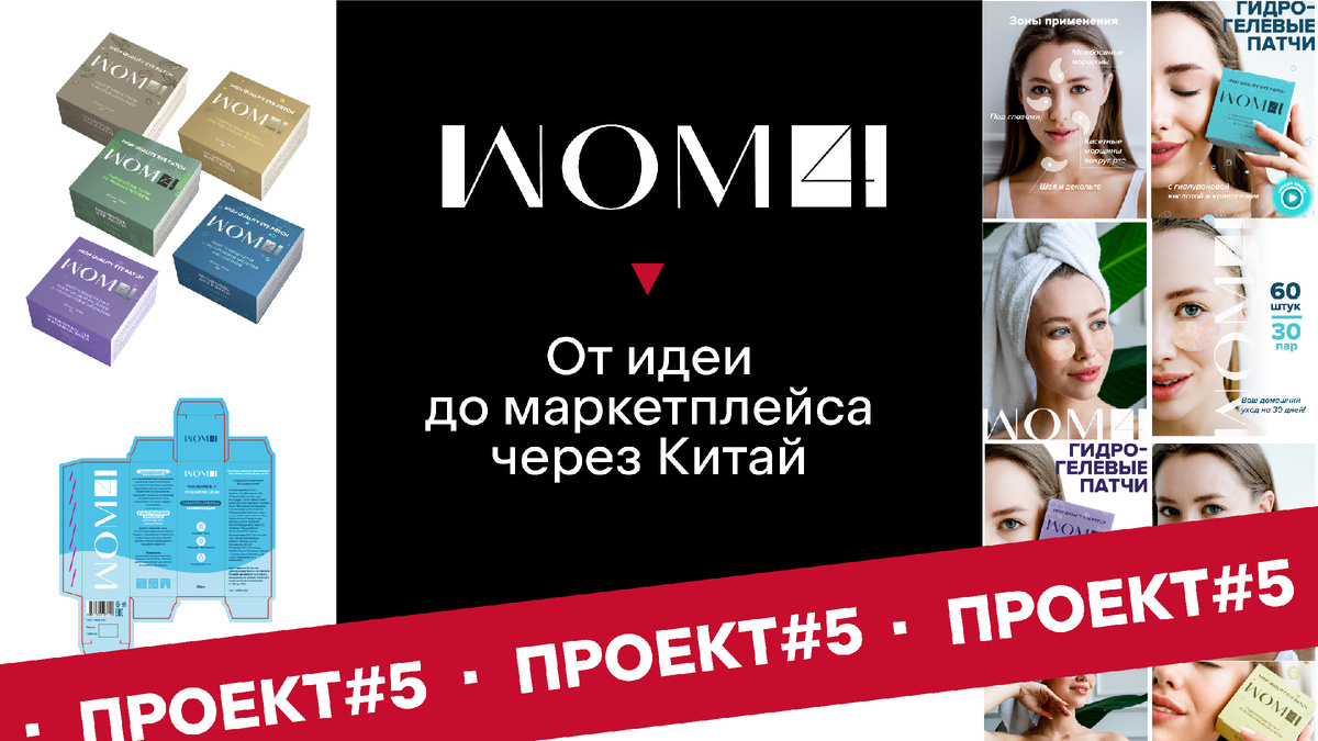 Сегодня мы хотим рассказать о комплексном проекте по созданию бренда гелевых патчей с нуля. Для WOM 4 мы разработали не просто контент, а полноценную визуальную идентичность - от нейминга до финальных рекламных материалов. 1. Создание нейминга Разработка названия WOM 4 — это пример блестящего семантического совпадения, где форма и содержание создают идеальную гармонию. Мы сознательно обыграли многослойность восприятия: WOM — не просто аббревиатура от "woman", а мощный фонетический образ. Создает ассоциации с "womb" (чрево, материнское начало), перекликается с "warmth" (тепло, забота), визуально напоминает "wow"-эффект Цифра 4 — гениальная лингвистическая находка. На английском "for" ("для") — превращает название в слоган "For Women". В азиатской культуре символизирует удачу, указывает на 4 ключевых преимущества продукта: мгновенное охлаждение, интенсивное увлажнение, антиэйдж-эффект и комфорт в использовании Ритмический рисунок. Короткое ударное "WOM", четкая завершающая "4" создает эф