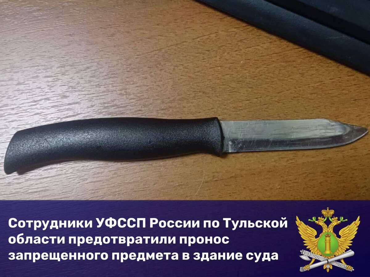 В Ленинский районный суд Тульской области пришла женщина 1971 года рождения в качестве ответчика. При входе в здание судебный пристав, обеспечивающий порядок, предупредил ее о запрете на пронос опасных предметов и ответственности за нарушение правил поведения в суде. Несмотря на это, женщина заявила, что не имеет при себе запрещенных предметов. Однако во время осмотра ее ручной клади пристав обнаружил нож. В отношении гражданки был составлен протокол об административном правонарушении согласно части 2 статьи 17.3 Кодекса об административных правонарушениях, связанный с неисполнением законного распоряжения судебного пристава. Действия судебного пристава предотвратили попытку проноса в суд опасного предмета, который мог угрожать безопасности присутствующих.