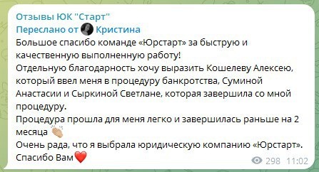 Кристина прошла через процедуру банкротства и официально освободилась от долгов ✅ Поздравляем с этим важным этапом и благодарим за доверие, оказанное нашей компании 🙏 Желаем финансовой стабильности и уверенности в завтрашнем дне!