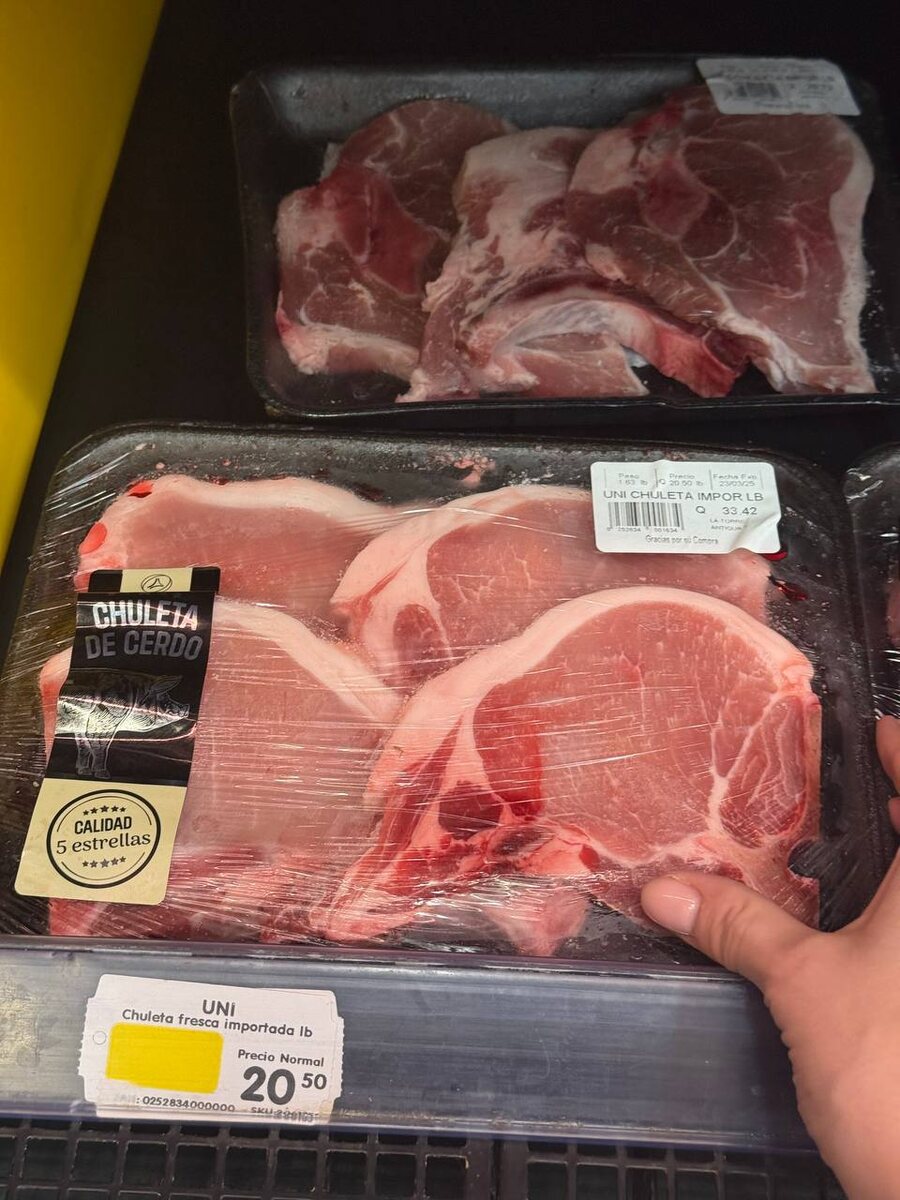 Сегодня забежала в супермаркет в Гватемале за продуктами и решила показать вам, сколько здесь стоят базовые продукты. Держитесь крепче, потому что цены могут удивить! Погнали по списку👇 Мясо и рыба: • Свинина (корейка, свежая, импортная): 20.50 GTQ за фунт - это примерно 2.67 $ или 216 ₽. • Креветки очищенные, замороженные (почти килограмм): 185.50 GTQ - 24.12 $ или 1 958 ₽. • Колбаски для хот-догов Perry (почти 1 кг): 29.30 GTQ - 3.81 $ или 309 ₽. • Салями (батон на 1 фунт): 69.95 GTQ - 9.09 $ или 738 ₽. Молочка и мороженое: • Йогурт Oikos, греческий, без сахара (120 г): 11.55 GTQ - 1.50 $ или 122 ₽. • Мороженое Sarita (ваниль, пол-литра): 18.40 GTQ - 2.40 $ или 194 ₽. • Сыр Cheddar Parma (400 г): 58.85 GTQ - 7.65 $ или 621 ₽. Фрукты и овощи на рынке (средние цены): • Помидоры - 10 GTQ/кг (1.30 $ / 106 ₽) • Огурцы - 7 GTQ/кг (0.91 $ / 74 ₽) • Картофель - 6.50 GTQ/кг (0.85 $ / 69 ₽) • Авокадо (1 шт.) - 5 GTQ (0.65 $ / 53 ₽) • Бананы - 4.50 GTQ/кг (0.59 $ / 48 ₽) Базовые продукты: • Я