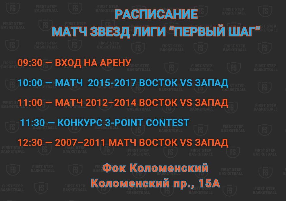 Готовьтесь к настоящему баскетбольному шоу! 💥 🎧 За атмосферу на площадке будет отвечать диджей Natali.Wave — музыка, как на лучших аренах страны! 💃 А поддерживать игроков будет яркая группа поддержки Fires — настоящие профи, которые зарядят зал энергией! Весь день — сплошной драйв: ⚪️ Восток — в белой форме 🔵 Запад — в синей Тренерские штабы — просто огонь! 🏆 А ещё будет награждение MVP 🎯 Конкурс 3-очковых 🎧 И море эмоций от зрителей, родителей и игроков! 📍*ФОК Коломенский, Коломенский пр., 15А* Вход на арену — с 09:30. Будет жарко! Подписывайтесь! Наш Инстаграмм - https://www.instagram.com/firststepbasket.ru/