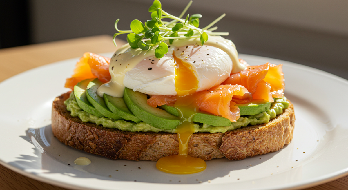 Авокадо и лосось — действительно источники полезных жиров, но если ваша цель — дефицит калорий, такой завтрак вам не помощник.