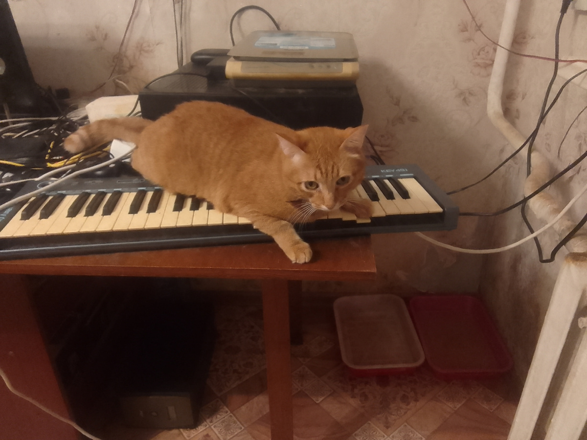 Когда кошка ходит по клавишам фортепиано, синтезатора, органа или клавесина.