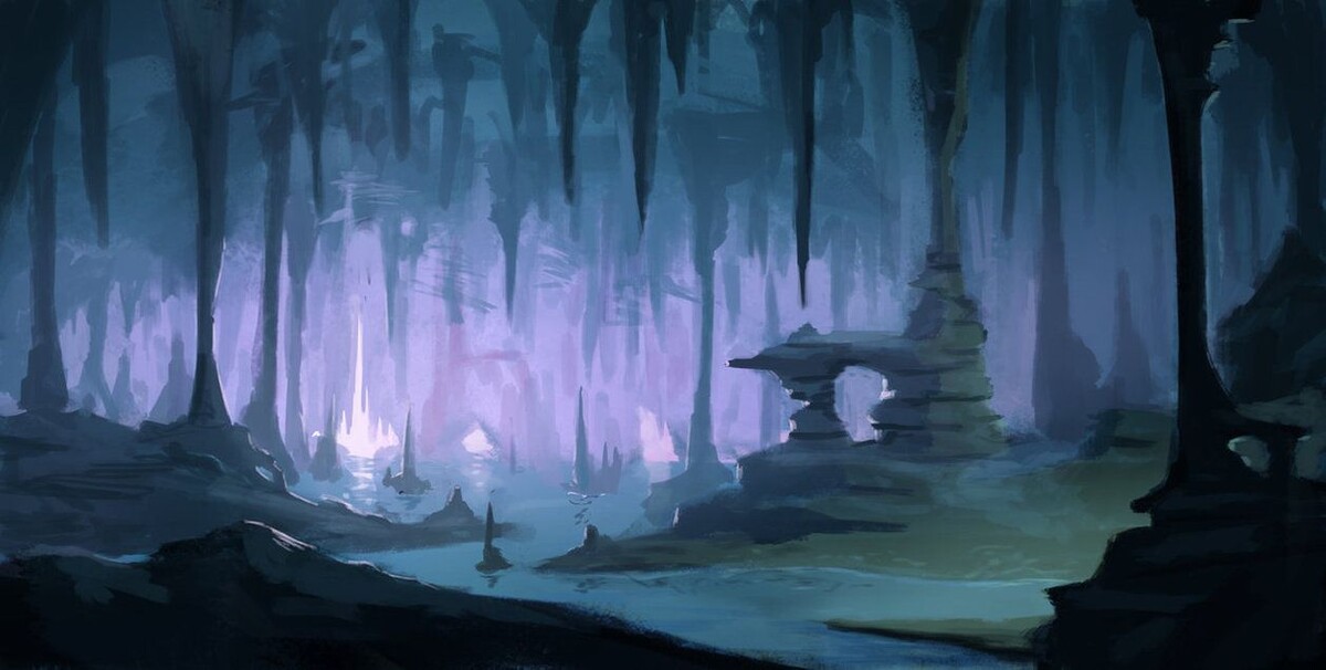 С трудом разогнувшись у выхода, граф поднял лампу повыше. В неровном свете, насколько хватало огонька лампы, виднелись причудливые сталактиты и сталагмиты, похожие на подземный каменный лес.