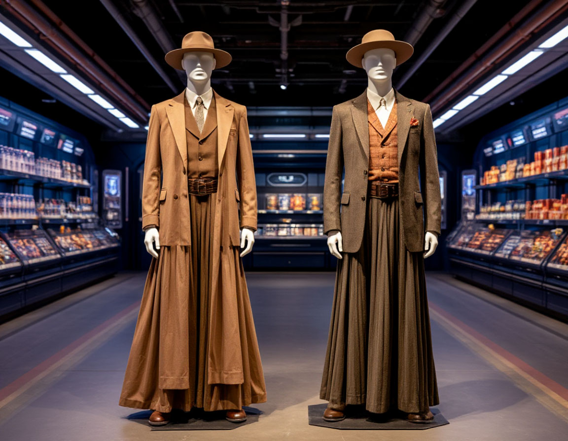 Вслед за капитаном точно через три минуты от космического корабля “Сыч” отделились две странные фигуры. Сверху до пояса они были одеты в широкие куртки, которые нашли в своем гардеробе, а вот снизу вплоть до подошв грубых армейских ботинок - в длинные юбки.