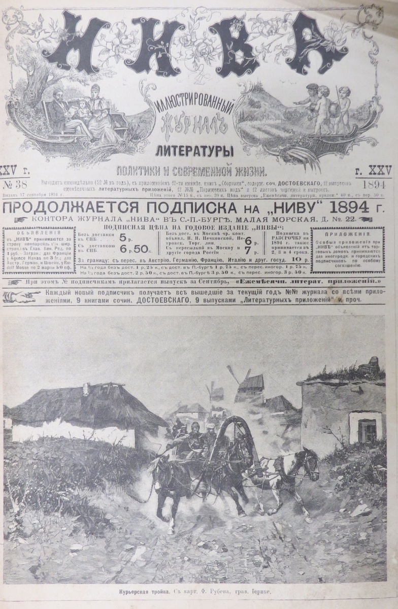 Когда в руки попадает журнал более чем 125-летней давности, дыхание невольно становится глубоким, а глаза голодными. В моих руках оказалась недельная подшивка журнала «Нива» 1894 года. Как тот архивариус, я жадно вчитывался в строки дореформенного русского языка, глотая абзацы легкого текста. Да-да, он как песня – плавный, красивый и даже литературный. Чтобы понимать, чем ценны те выпуски журнала, надо знать, что же это было за издание…