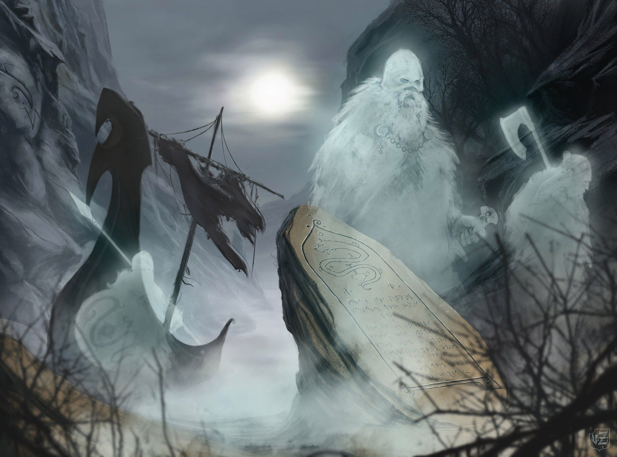 Скандинавские представления о душе были сложными и многослойными. Считалось, что человек обладает несколькими духовными сущностями: хамингья (личная удача), фюльгья (дух-хранитель, часто в образе животного) и различные аспекты души — хуг (разум), мунн (память) и фьёр (жизненная сила). После смерти эти сущности могли иметь разную судьбу. Некоторые оставались с телом в могиле, другие отправлялись в загробные миры, а третьи могли перерождаться в потомках, особенно в тех, кто носил имя умершего. Погребальные обряды скандинавов отражали их представления о загробной жизни. Археологические находки погребальных ладей (например, Осебергский корабль) свидетельствуют о вере в путешествие в иной мир. В могилы клали оружие, украшения, предметы быта — всё, что могло понадобиться в посмертном существовании. Особенно показательны богатые захоронения вождей и знати. Ибн Фадлан, арабский путешественник X века, описал погребение знатного руса (скандинава), включавшее человеческие жертвоприношения и сожжение тела вместе с кораблем. Такие сложные ритуалы указывают на важность правильного перехода в загробный мир. Руническая традиция также сохранила множество свидетельств о представлениях скандинавов о загробной жизни. На погребальных камнях часто высекались надписи, выражающие надежду на благополучное пребывание умершего в ином мире. Например, на рунических камнях встречаются фразы вроде "Пусть Тор освятит эти руны" или "Да примет Фрейя его в свой чертог". Некоторые надписи прямо упоминают Вальхаллу как место упокоения храброго воина. Интересно, что археологические данные свидетельствуют об изменении погребальных обрядов с течением времени. В позднюю эпоху викингов (X-XI века) заметно влияние христианства, когда в одних и тех же захоронениях могли сочетаться языческие и христианские символы — молот Тора рядом с крестом, что указывает на постепенную трансформацию представлений о загробном мире.