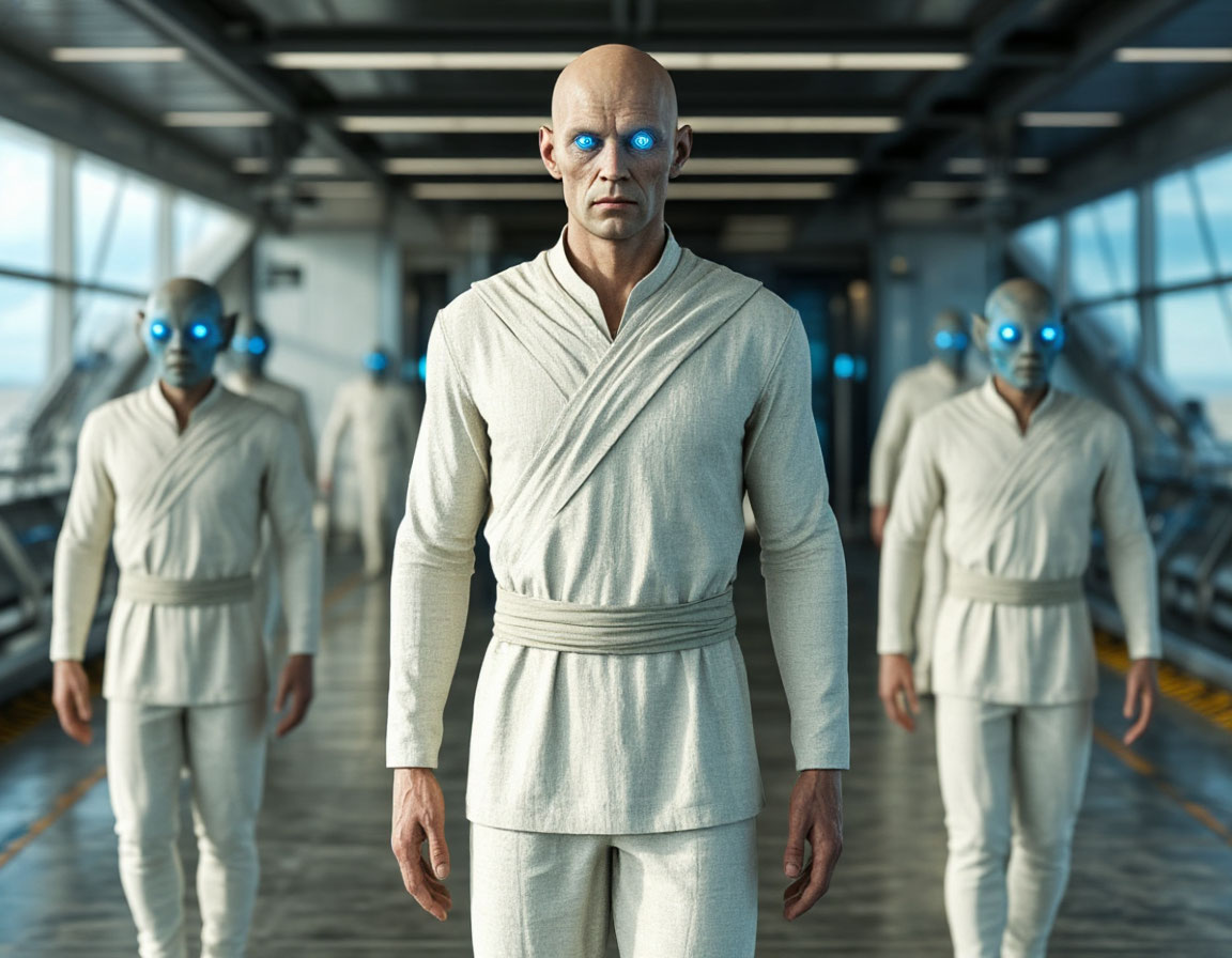 На пороге таможенного терминала их встречал высокий ломпанец, одетый в их национальную одежду: белые брюки и широкую легкую тряпку, похожую на тунику, которая обматывала тело мужчины несколько раз. На его лысой голове торчали два нароста, которые земляне называли рогами. За этим таможенником, который был, наверное, главным в команде, стояли еще двое таких же гуманоидов, которые периодически моргали почти круглыми синими глазами.