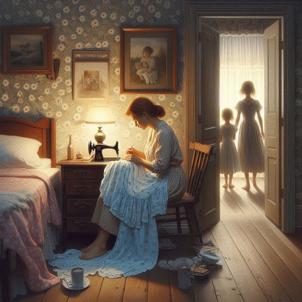 — Девочки, вы опять под дверью сидите?" Голос прозвучал сверху, заставив меня вздрогнуть. Я прижала к себе дрожащую сестру, пытаясь защитить её от ледяного сквозняка в подъезде. Наверху, на площадке третьего этажа, стояла Она — высокая женщина в стоптанных тапках и выцветшем халате. В руке она держала мусорное ведро, но смотрела на нас так, словно держала целый мир. — Мама... опять не открывает,— прошептала я, пряча лицо . Лера всхлипнула, её маленькие пальцы впились мне в рукав. Женщина вздохнула. — Заходите ко мне. Я вас накормлю. Хоть поесть нормально сможете. 2002 год. Мне шесть, Лере — три. Наша квартира давно перестала быть домом. Отец пропадал неделями, возвращаясь лишь затем, чтобы вынести из дома последние деньги. Мать целыми днями лежала на диване, уставившись в потолок мутными глазами. Соцработники приходили дважды. Первый раз — когда соседи вызвали полицию из-за криков. Второй — когда Лера упала с качелей и разбила голову. Оба раза они уходили, разводя руками: