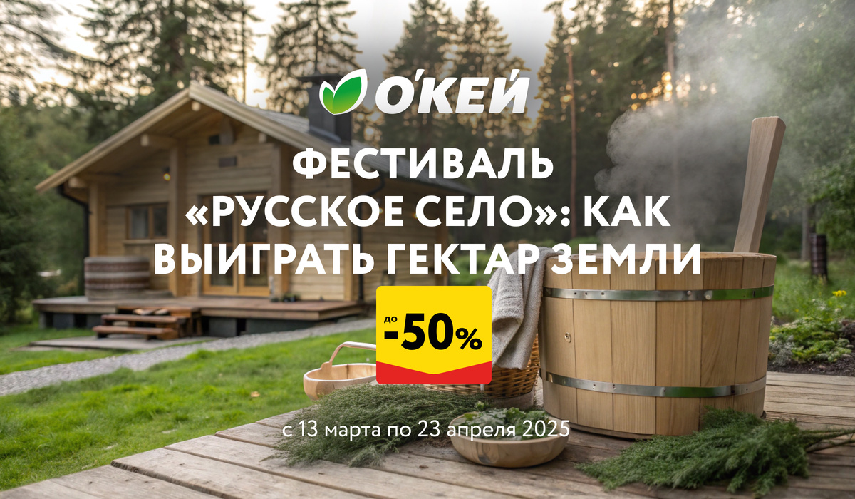 Продолжаем рассказывать о фестивале «Русское село», который состоится с 13 марта по 23 апреля в сети О'КЕЙ. Мы уже писали, что у вас есть возможность выиграть участок земли, делая покупки на 2000 рублей и выше. Но фестиваль – это еще и изобилие скидок на ваши любимые товары. Получается двойная выгода: покупаете по акции то, что вам нужно, и получаете шанс на выигрыш. Прекрасное комбо! Товары для бани Любители бани знают, какой оздоровительный эффект она имеет, поэтому стараются посещать ее в любой сезон. Вот О'КЕЙ и решил порадовать покупателей весенними скидками на банные товары – поддать жару, как говорится. Вам может пригодиться что-то из этого списка: • Веник березовый свежий (149 ₽); • Шапка банная из белого войлока (159 ₽); • Мыло жидкое «Рецепты бабушки Агафьи» (0,5 л, 369 ₽); • Гель для душа (1 л, 249 ₽); • Шампунь «Рецепты бабушки Агафьи» (350 мл, 139 ₽); • Очищающие и питательные маски для лица в ассортименте «Банька Агафьи» (99 – 119 ₽); • Наборы эфирных масел – по 3 штуки (