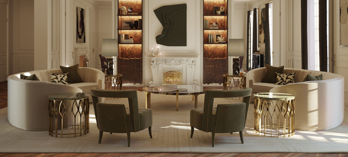 Современный интерьер гостиной в стиле ар-деко с элементами классики