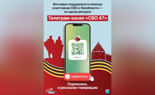 В Ленинградской области по поручению губернатора Александра Дрозденко создали телеграм-канал «СВО 47». В нем рассказывают о федеральных и региональных мерах поддержки, которыми могут воспользоваться участники СВО и их родные.