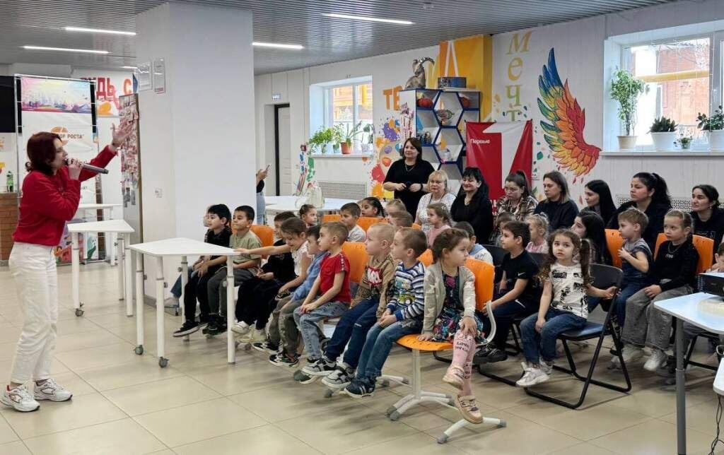 Самым юным активистам «Движения Первых« — воспитанникам детского сада «Радуга» из станицы Багаевская председатель местного отделения «Движения Первых» Дарья Горбатенко рассказала о Доме Первых в Багаевском районе — ММЦ «Вектор роста».