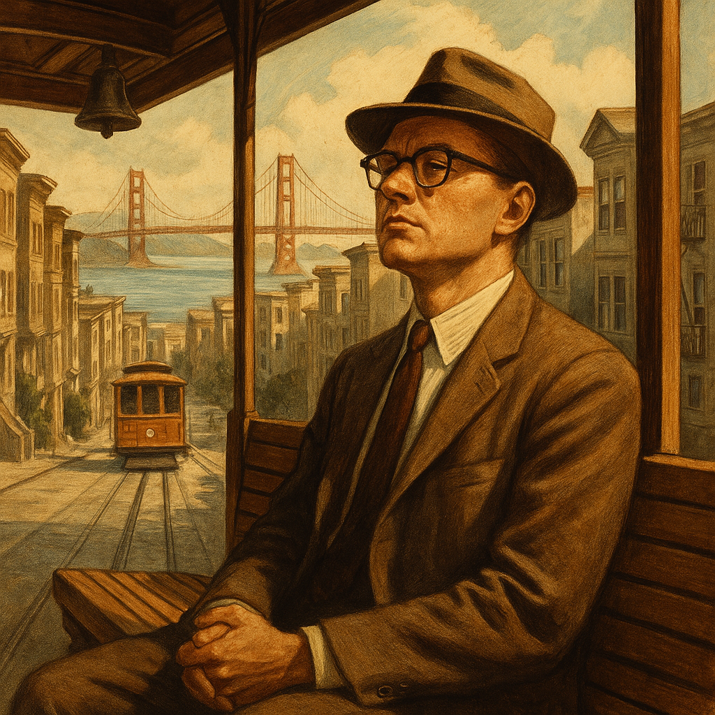 “Горбатые улицы Сан-Франциско проплывали за окном. Мерное покачивание вагона убаюкивало. Гордон знал, что в маленькой грязной квартирке на окраине Китайского квартала сейчас проснется Эрика. Взглянет на величественные “Золотые Ворота” за окном. Вспомнит вчерашний вечер. А затем ее взгляд упадет на пухлый конверт из папиросной бумаги, лежащий на тумбочке. И это изменит все.