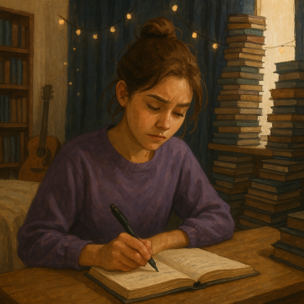 Маша понимает, что уже несколько минут «висит» над дневником. Опускает взгляд на ручку — пластиковый кончик выглядит так, словно его погрызла очень голодная крыса. Оглядывает комнату — грустная гитара в углу, лампочки гирлянд на шторах, идеально заправленная кровать. И книги. Книги штурмом захватили комнату: штабеля на полках, груды на полу, забор, закрывающий солнце, на подоконнике. И все — про биологию, нейрохимию и нейрофизику, анатомию, вирусологию и даже уфологию.