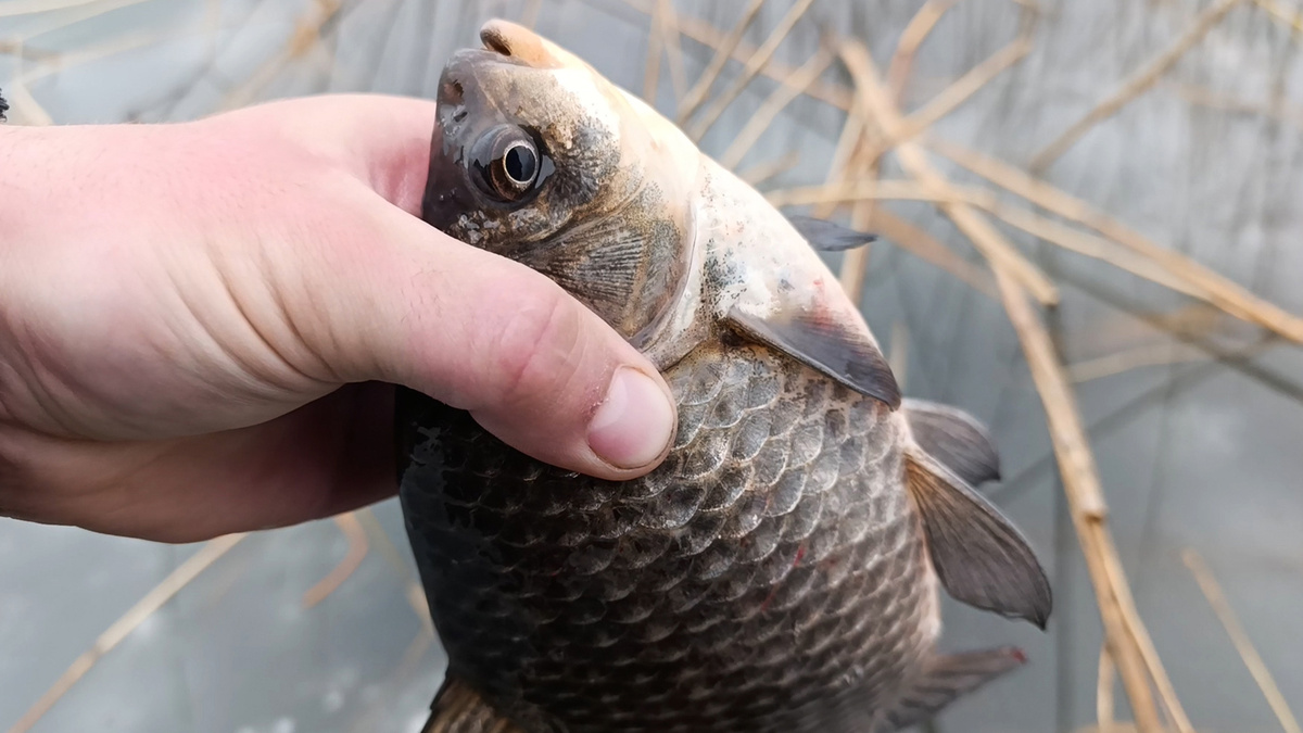 – Кто-то скажет: "Во дурные! Лезут же..". Ладно, и я лет 7 назад был такого же мнения... Ух-ты, ямка какая-то... Левее бери! 😅 Заходить на лёд такой, это отдельная история. От берегов метров на 30 уже вода стоит. И кто на что горазд: либо на лодках заплывают, либо в забродном костюме. Завтра в костюме уже вряд ли зайдёшь. Последний лёд. Уже прям последний. Больше не поеду, сезон вчера закрыл. На этот раз точно (5 дней назад говорил так же 😁). А собрались все мы, "дурные", за карасями. За весенними, которые в это время могут хорошо поклевать. И вправду, поклевал. Но поискать пришлось немножко. Мы с товарищем нашли почти сразу – со второй точки. Половили часа полтора в хорошем темпе, клевал прям неплохо – голов по 30 взяли. Потом как отрезало. Затихло. Снова разошлись по разные стороны – и