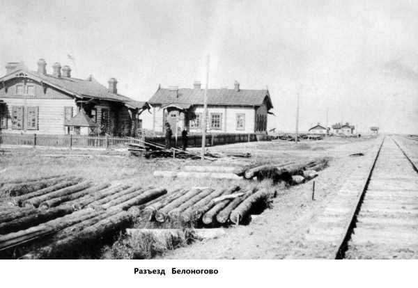 Начиналось все со строительства Транссибирской магистрали. В начале XX века (1908-1912 гг.) прокладывали железную дорогу на северо-амурском участке Транссиба. Возникали разъезды. В 1912 году между двух сел, Поляна и Белоногово, построили казарму для железнодорожников. Это был разъезд – место, позволяющее разъехаться встречным поездам. Назвали этот остановочный пункт по фамилии первопоселенца – охотника Белоногова. Такое же название носило и близлежащее село, основанное еще в 1867 году.