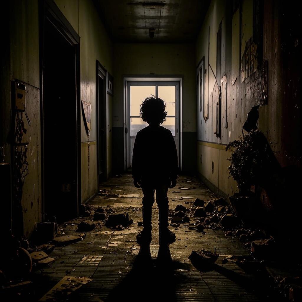 Существо ползло по потолку, как огромный паук, его "лицо" теперь было ближе — и ребёнок наконец разглядел, что это не одно лицо, а множество. Они проступали под кожей, как пузыри, то появляясь, то исчезая: старики, дети, женщины — все с открытыми ртами, будто кричали без звука.