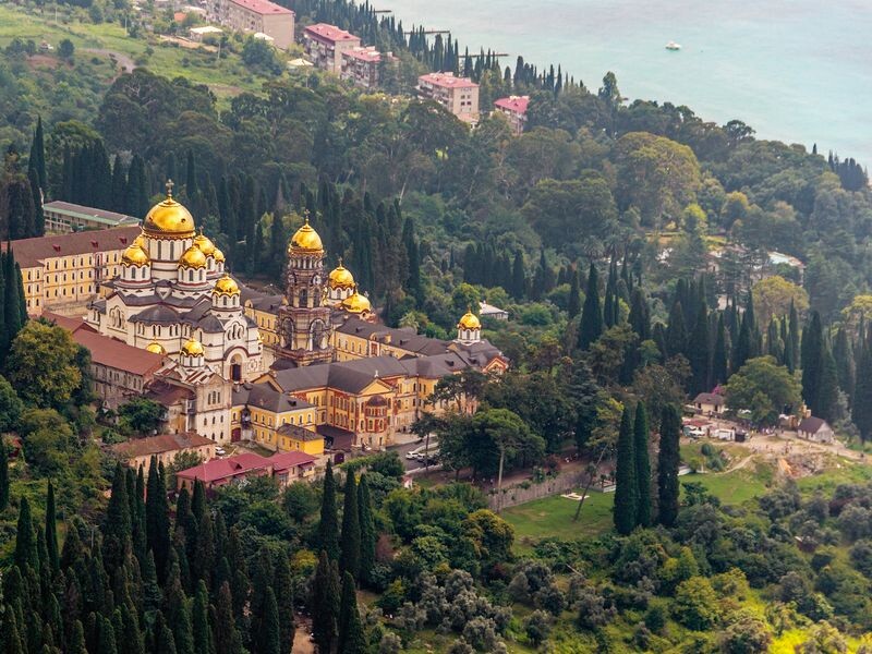 В Новом Афоне вы увидите старинный монастырь, гидроэлектростанцию и, если повезёт, спуститесь в Новоафонскую пещеру — одну из глубочайших в мире.