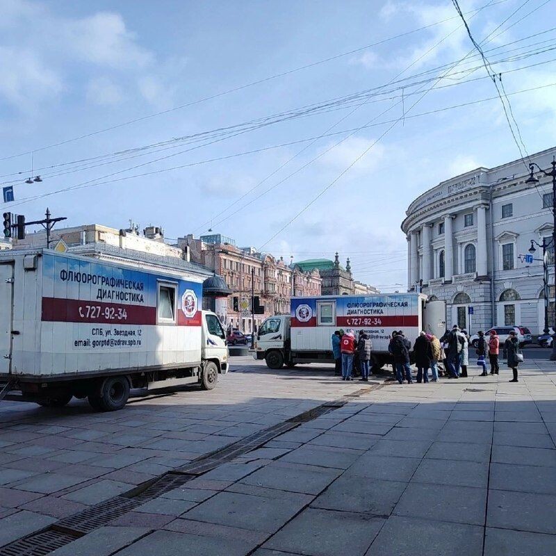 В передвижном флюорографе у метро «Гостиный двор» в Северной столице 134 петербуржца сделали флюорографию 25 марта. В пресс-службе комитета по здравоохранению Санкт-Петербурга сообщили, что специалисты за день выявили одну флюропатологию и сразу направили пациента в Городской противотуберкулезный диспансер на госпитализацию в диагностическое отделение. «Если вам уже есть 18 лет, до конца недели можно успеть пройти обследование на туберкулез в мобильном флюорографе. 27 марта ул. Пражская, 46, 28 марта у метро "Электросила" с 11:00 до 14:00 с паспортом. Время работы флюорографа может быть сокращено по техническим причинам», – отметили в комитете. В ведомстве подчеркнули, что флюорографию также можно бесплатно сделать в поликлинике по месту жительства.