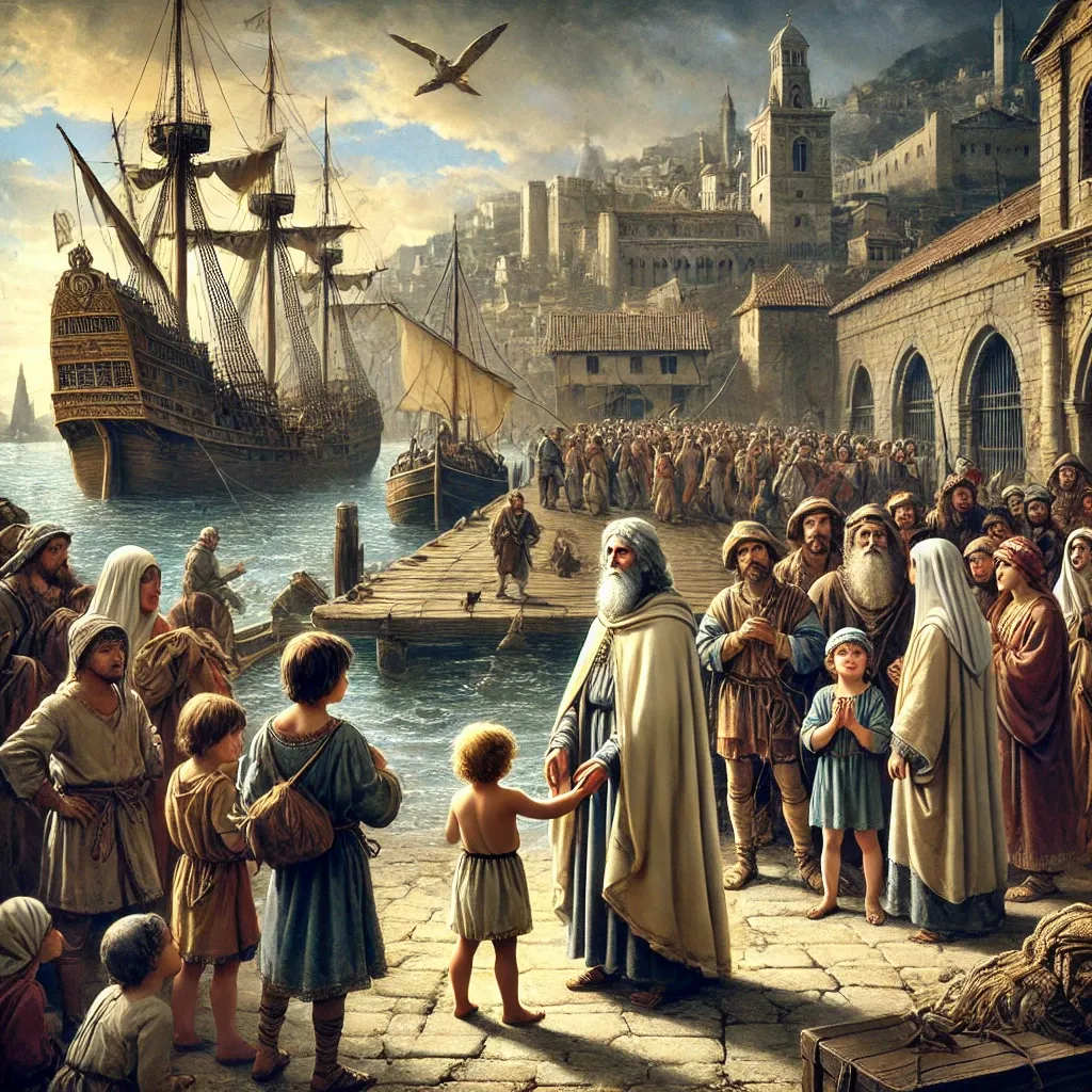 Во времена крестовых походов именно дети пытались вновь завоевать Иерусалим для Христа Это был порт Марселя. Зрелище было непривычным. Группа детей пыталась сесть на корабль, отплывающий в Тунис. Кто были эти дети, где были их родители и почему они хотели попасть в Тунис? Во время XIII века Европу охватила крестовая лихорадка. Люди всех возрастов и сословий стремились попасть в Святую Землю и сразиться с неверными (мусульманами). Лихорадка усилилась после того, как исламские войска вновь захватили Иерусалим в 1187 году. Когда Папа Римский призвал добровольцев к борьбе за возвращение Святой Земли (современный Израиль), люди откликнулись. Обычные люди по всей Европе откликнулись на призыв Папы, что привело к непредвиденным последствиям. Лидеры крестовых походов имели разные религиозные намерения. Некоторые, как, например, Пётр Отшельник, разжигали антисемитские настроения среди своих последователей. Толпа под его командованием грабила и разоряла еврейское имущество. Пётр утверждал, что к