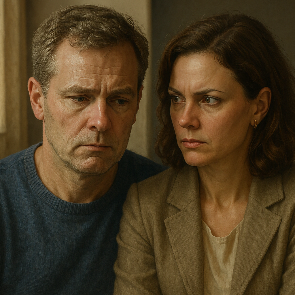 Лена сидела, закрыв лицо руками, пытаясь скрыть слёзы. Она впервые видела своего спокойного и рассудительного отца таким растерянным и беспомощным. Гости молчали, глядя то на Наталью, то на Алексея, явно желая оказаться где угодно, только не здесь.