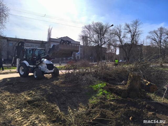 В Краснооктябрьском районе Волгограда начали благоустраивать сквер на проспекте Металлургов. Рабочие расчищают бульварную зону от старых деревьев.