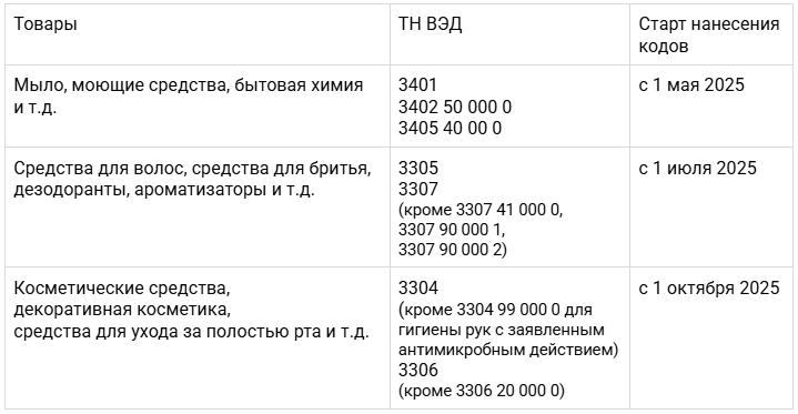 Маркировка косметики и бытовой химии началась в 2025 году, а завершится к 2028 году.