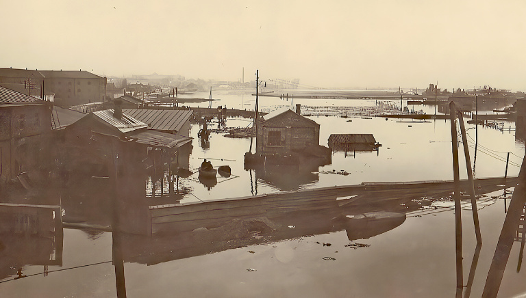 Разлив реки Кубани во время наводнения весной 1932 г. Фото: А. И. Никонов, goskatalog.ru