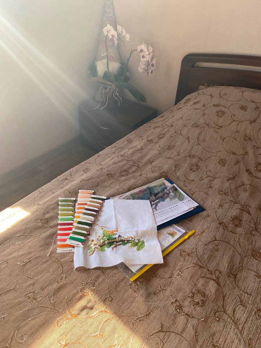 Как же здорово просто сидеть, пить обжигающий кофе, щурится на солнышко и ни куда не торопится! А потом пойти и вышивать целый день. 😊