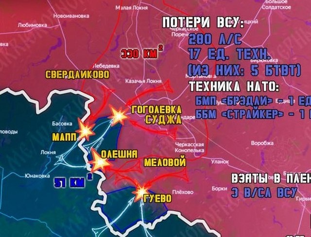 Эксперты, следящие за ситуацией в приграничье нашего региона и соседних областей, и представители группировки войск «Север» ВС РФ, освобождающей Суджанский район, рассказали о происходящем за минувшие сутки. В Сумской области российская армия ведет бои в районе вклинения в районе Журавка — Новенькое — Басовка и у села Владимировка. В Курской области начались бои за приграничное село Гуево, к которому вплотную подошли наши войска. В начале марта сюда командование ВСУ перебросило несколько отрядов сил специальных операций (ССО) и 132-го разведбатальона. Сейчас этот спецназ противника оказывает сопротивление российским штурмовикам. Из окрестностей Гуево были выбиты подразделения 95-й одшбр и 129-й обр ТерО, остатки которых также отошли в населенный пункт. Ранее сообщалось о том, что ВСУ заминировали им пути отхода из села, чтобы сдержать наступление ВС РФ. Серьезные потери противник несет возле хутора Олешня, в окрестностях села Гоголевки и МАПП «Суджа», где Северяне перемалывают переброш