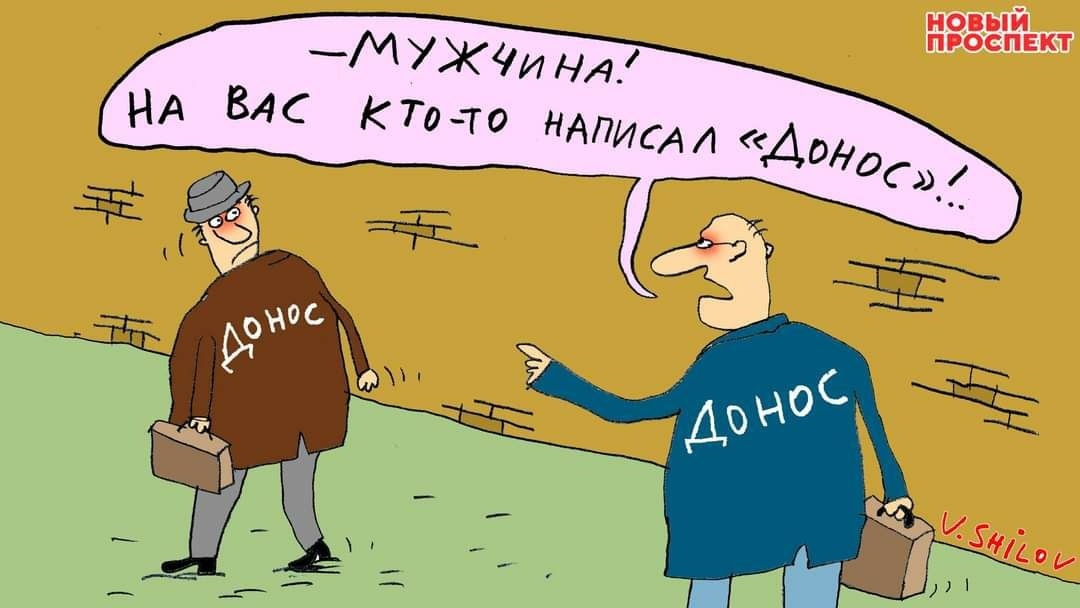 14% россиян готовы донести на своих соседей или прохожих на улице, если услышат от них оскорбления в адрес властей, а 24% готовы сделать донос в случае, если услышат критику ВС РФ, следует из опроса ФОМ. Ну тут, наверное, следует сначала сказать, что, не нужно принимать цифры опросов за истину, потому что опрос 1600 человек в огромной стране покажет только очень приблизительно результаты. Тем более, когда опросы проводят провластные опросные организации. Мне иногда кажется, что они вообще никакие опросы не проводят, а пишут их результаты. Ну допустим, что и в этот раз они попали примерно в нужные цифры. На самом деле 14% это не так уж и много, тем более 60% ответили, что никогда доносить не будут, но самое интересное, что эти цифры достаточно близки к другим цифрам. Примерно столько же людей в нашей стране (немного больше) постоянно смотрят политические ток шоу. Совпадение, как говорит один известный персонаж, не думаю. Мне вот искренне интересно мотивации этих людей. Критика власти в