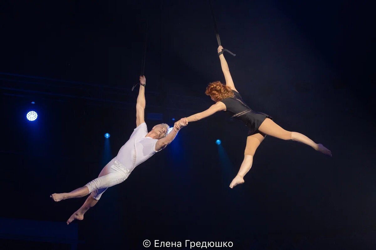 Музыку для номера взяли из мюзикла «Notre-Dame de Paris» и дали ему название «Desire of Flight» – «Желание летать». Работали без страховки – иначе на ремнях невозможно.