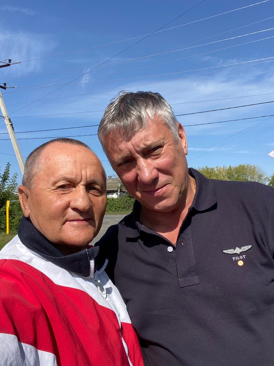 Прежде всего мой друг, потом уже многократный чемпион мира и страны по высшему пилотажу. Встречаюсь с ним недавно снимаю селфи. Саша долгое время был директором Авиа Спорт Клуба Ишима. Воспитал множество чемпионов и мастеров спорта по высшему пилотажу и парашютному спорту. После его ухода Клуб "сдулся". Так бывает, не место красит человека, а человек место. Было время он предложил мне прыгнуть с парашютом. Я всегда думал, что в сорок это поздно. Приехали тандемчики из Омска. Он предлагает мне рискнуть. Садимся в самолёт, поднимаемся на высоту три тысячи метров, меня мастер пристёгивает спереди, инструктирует подогнуть ноги, подходит к открытой двери, смотрит куда прыгать. Я это время вишу за бортом. Это самое страшное. Потом мы отделяемся от самолёта и летим полтора километра в свободном падении. Земля очень быстро приближается к нам, почему то не страшно. Открывается парашют мы планируем и мягко приземляемся. В это время прыгают курсанты. Я подхожу и прошу парашют для самостоятельного прыжка. Все улыбаются и смеются. Я совершаю прыжок самостоятельно. Потом я ещё прыгал, но мой компаньон консерватор, так мне прожужжал уши, что он никогда не доверил бы жизнь, какой то тряпке. И я отказался. Потом я понял, что он сам никогда бы этого не сделал, не захотел, что бы я его в чём то обошёл. Завистливый он. Эта завистливость и привела его к предательству меня. Уж очень во многом я его превосходил.