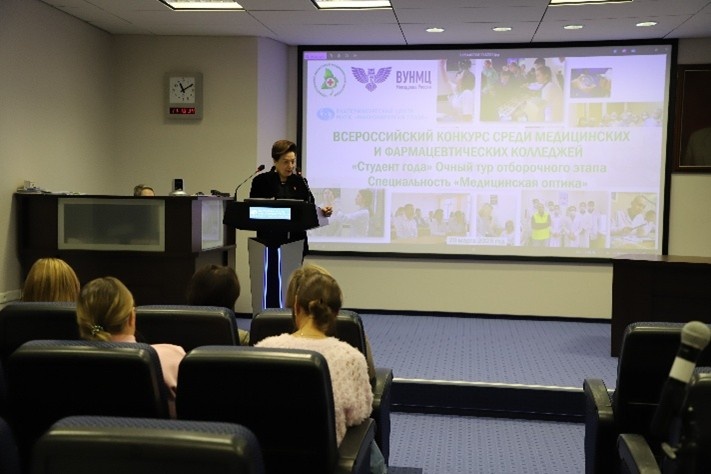 20 марта 2025 года на базе Екатеринбургского центра МНТК «Микрохирургия глаза» прошел очный тур отборочного этапа первого всероссийского конкурса среди медицинских и фармацевтических колледжей в номинации «Студент года» по специальности «Медицинская оптика». С приветственным словом на открытии конкурса выступила директор ГБПОУ «Свердловский областной медицинский колледж»., главный внештатный специалист по управлению сестринской деятельностью Свердловской области и УрФО, заслуженный учитель РФ, Левина Ирина Анатольевна: «Уважаемый Олег Владимирович, уважаемые студенты и конкурсанты! Сегодня знаменательный день – ВУНМЦ оказал нам высокое доверие, поручив проведение отборочного этапа конкурса по Уральскому федеральному округу, и я выражаю искреннюю благодарность за возможность реализовать этот важный этап именно в вашем Центре. Благодаря вашей команде профессионалов, мы сможем не только успешно реализовать текущие задачи, но и внести значительный вклад в популяризацию данной специальности
