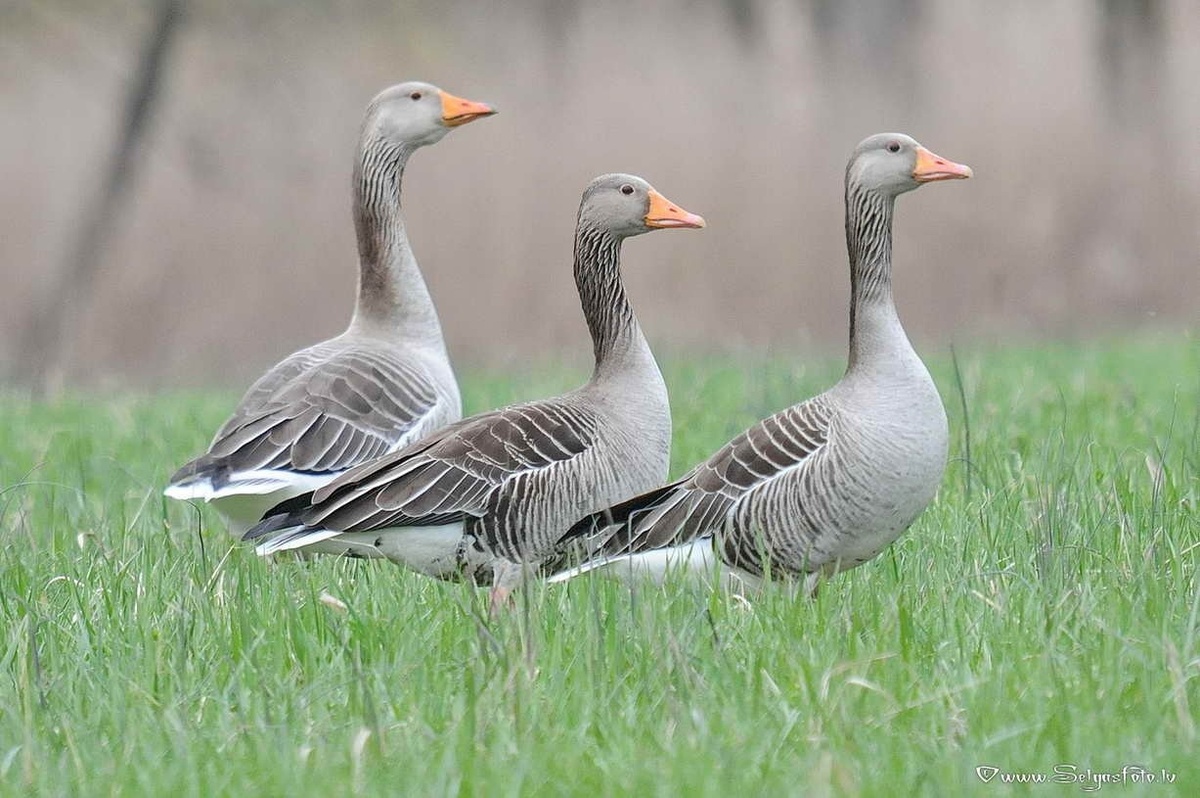 Среди перелётных птиц серый гусь (Anser anser) занимает особое место. Это прародитель домашних гусей, символ верности и свободы, неизменный обитатель болот, рек и озёр. Его громкий крик возвещает приход весны, а стройные клинья в небе напоминают о бесконечном цикле жизни. Серый гусь — крупная птица, достигающая 90 см в длину и весящая до 4 кг. Его оперение скромное, но изысканное: серовато-бурые перья с лёгким узором создают эффект естественной маскировки. Массивный розоватый клюв и светлые лапы делают его легко узнаваемым среди других гусей. Главное богатство этой птицы – крылья. Размах до 180 см позволяет ему преодолевать тысячи километров во время миграции. В полёте стая образует клин или линию, а гуси чередуют лидера, чтобы экономить силы. Серые гуси живут у воды – на заболоченных равнинах, в поймах рек, у озёр и водохранилищ. Они отлично плавают и ныряют, но большую часть времени проводят на суше, питаясь травами, корнями и злаками. Осенью они находят поля с остатками зерна, что