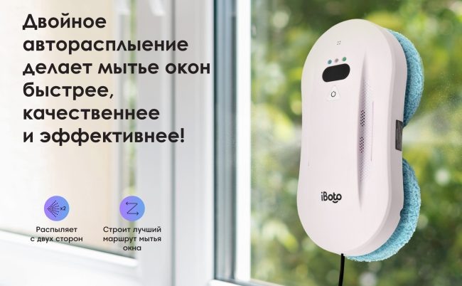 ✔ Автоматическая регулировка подачи воды – в продвинутых моделях устройство определяет степень загрязнения и корректирует объём распыления. Например модель iBoto Win 396