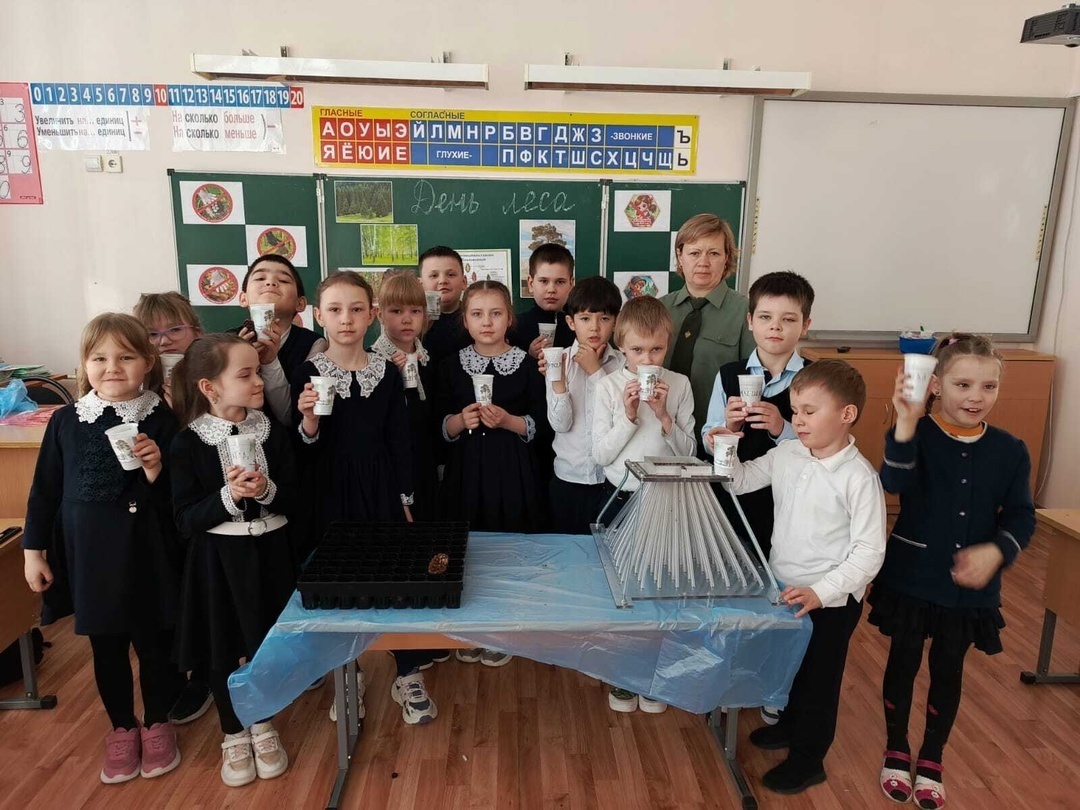 Далее юным лесоводам предложили лично поучаствовать в процессе. В заранее подготовленные емкости ребята посадили семена сосны. Они пообещали ухаживать за ними, а когда придет время, высадить сеянцы на пришкольном участке.