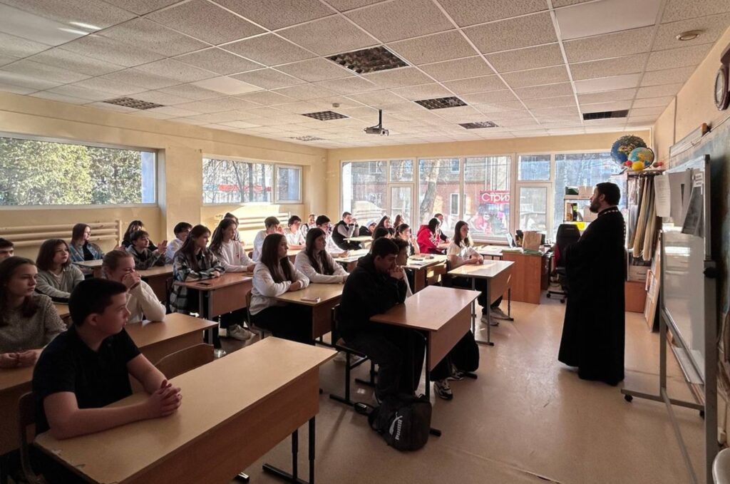 20 марта 2025 года настоятель храма преподобного Сергия Радонежского и мученика Валентина в Королёве иерей Алексий Шумейко провёл с учащимися 9-го класса средней общеобразовательной школы № 1 встречу-урок на тему «Великий пост».