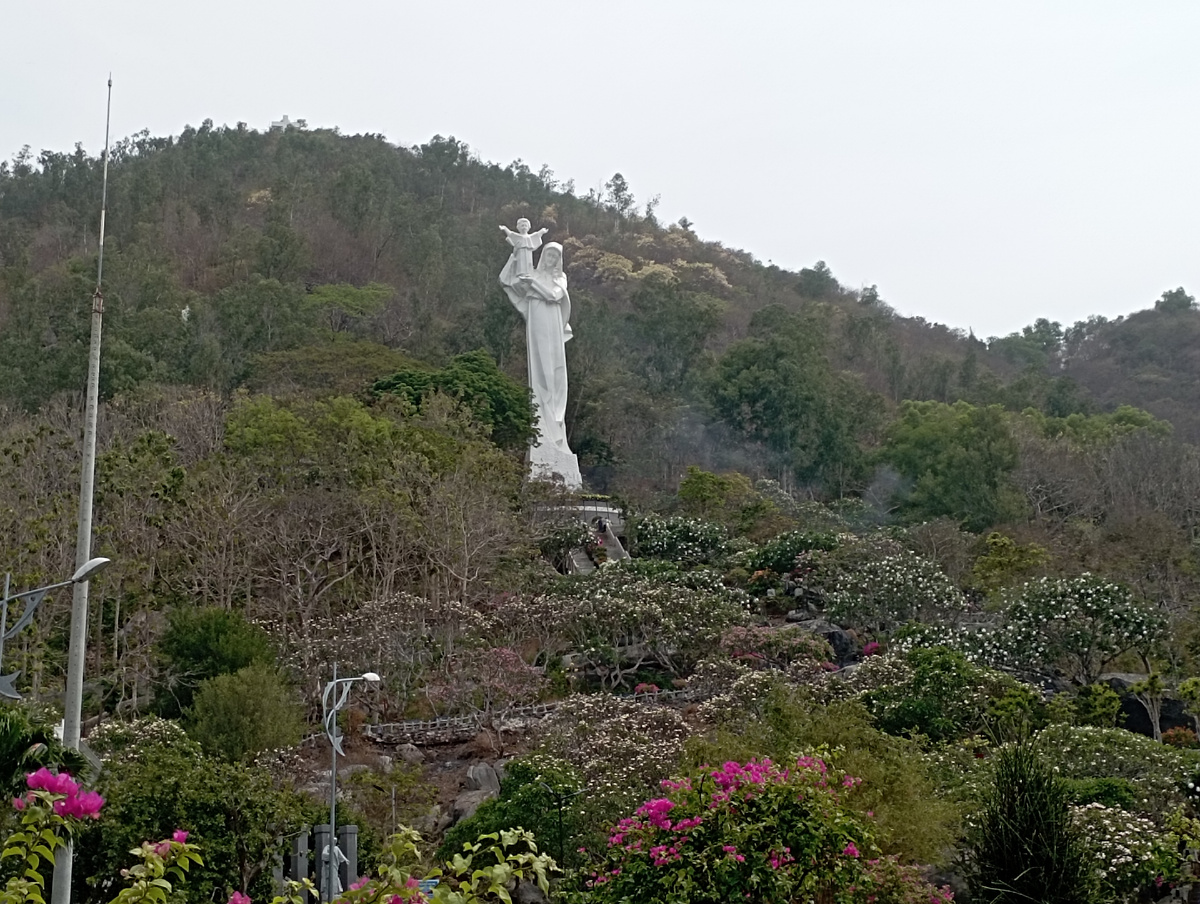 В эти дни Великого поста мы с мужем совершили восхождение на гору к статуе Девы Марии с младенцем Иисусом на руках. Статуя расположена на западном склоне горы Нуйлон на высоте 60 м над уровнем моря. Статуя построена в 1992 г. из белого мрамора, высота ее составляет 25 м, вес - около 500 тонн. К ней можно подняться по лестнице, а можно и по извилистой тропе, где установлены небольшие композиции, изображающие путь Христа. От статуи Марии вверх на холм, именуемый местными жителями Голгофой, ведет очень крутая тропинка еще к одному Кресту. Однако мы туда не поднялись по причине своей старческой дряхлости. Путь очень тяжёлый и крутой. На входе нас встретила такая интересная композиция А чуть подальше композиция святого семейства Мы были потрясены, с какой любовью вьетнамцы ухаживают и облагораживают это место. Всё очень красиво и вдохновляюще. Рекомендуем к посещению! Мой муж Андрей ведёт видеоблог о нашем эксперименте. Вот ссылка на его канал: https://rutube.ru/channel/39655547/